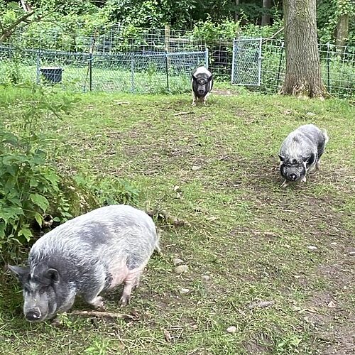 That’s why we recommend that pigs have a friend! However, forming a strong bond doesn’t always happen overnight. Just like people, pigs need time and space to get to know each other. It’s perfectly normal if they don’t become best friends right away.