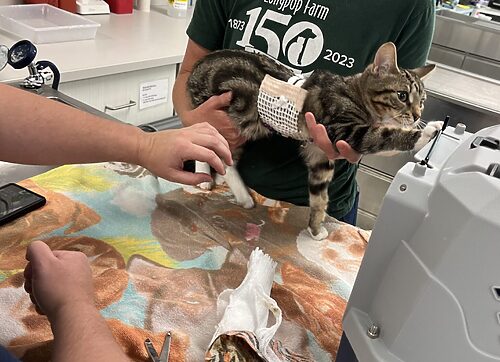Over the next several weeks, Vanilla Bean returned to our clinic to see Dr. Young and have his bandages changed before returning to the comfort of his foster home. Four weeks later, he was finally able to have the splint removed for good, with the skin beneath the cast healing well. Even more exciting, Vanilla Bean found a new home!