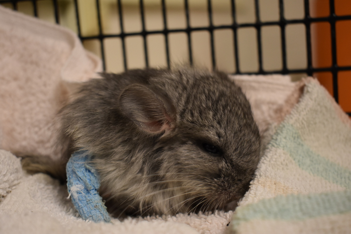 There is no task, or as it would happen, cast, too small for the veterinary clinic to tackle here at Lollypop Farm. Avery, a 1-month-old baby chinchilla, arrived at the