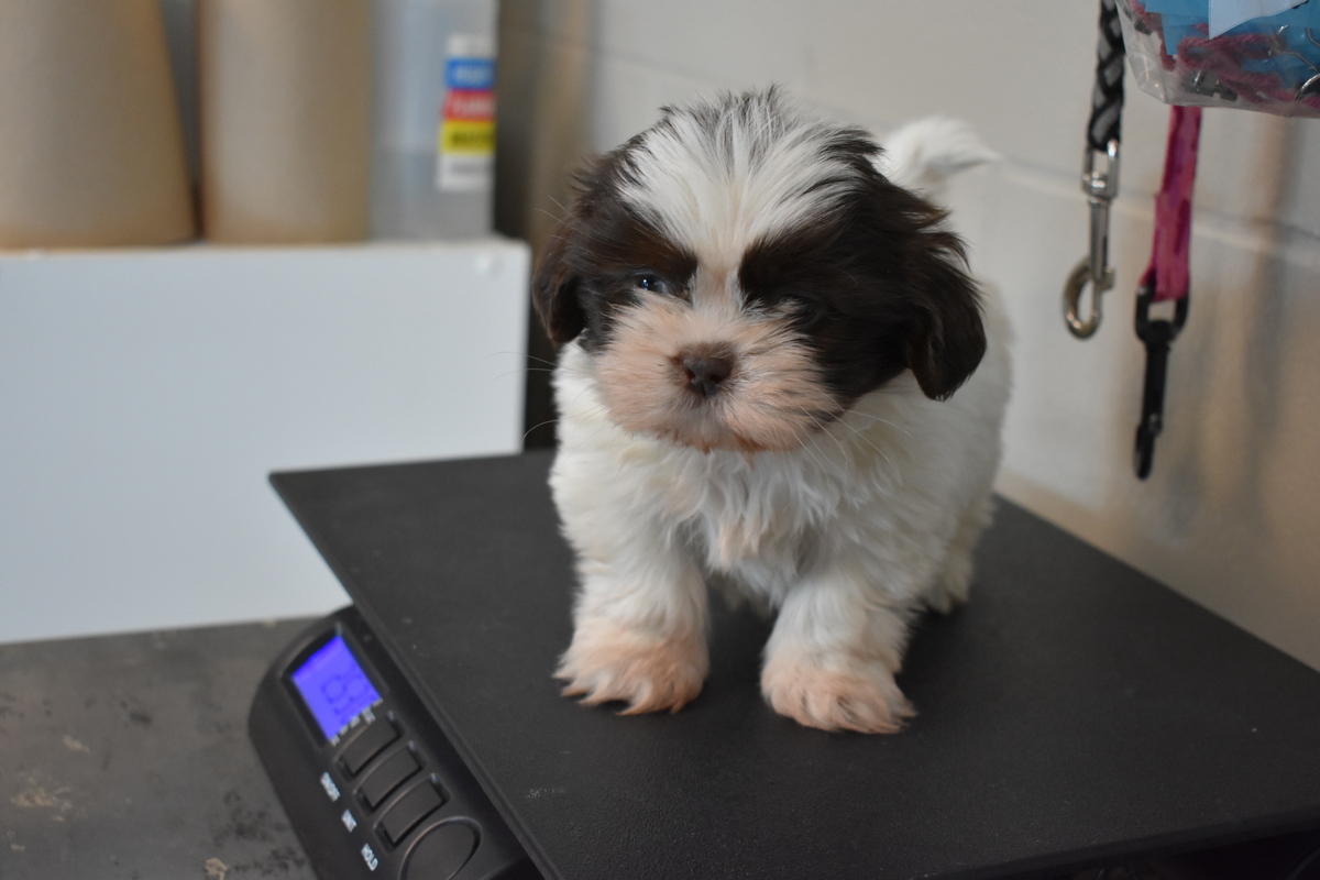 When Biscuit, a 7-year-old Shih Tzu, was surrendered into our care. She was very dirty and covered with lice. Here, Biscuit finally began to receive the care she had always