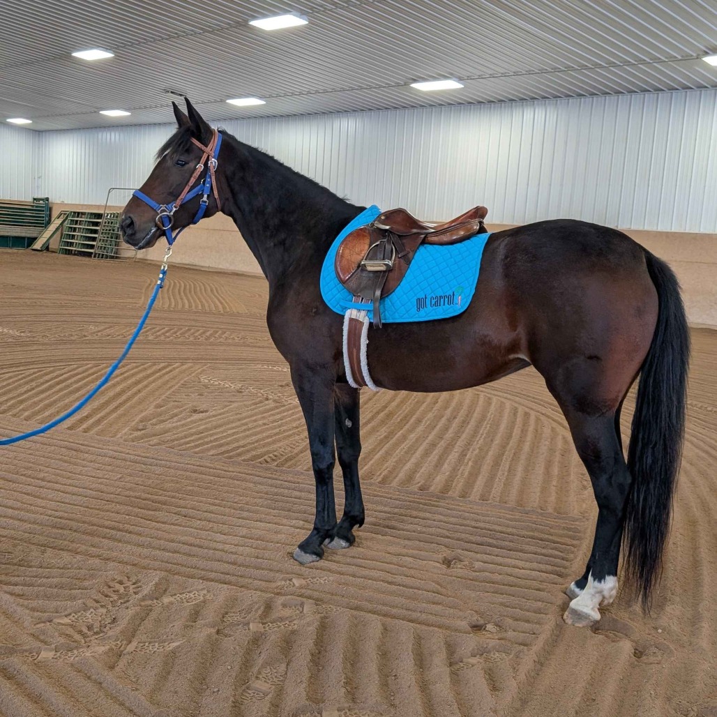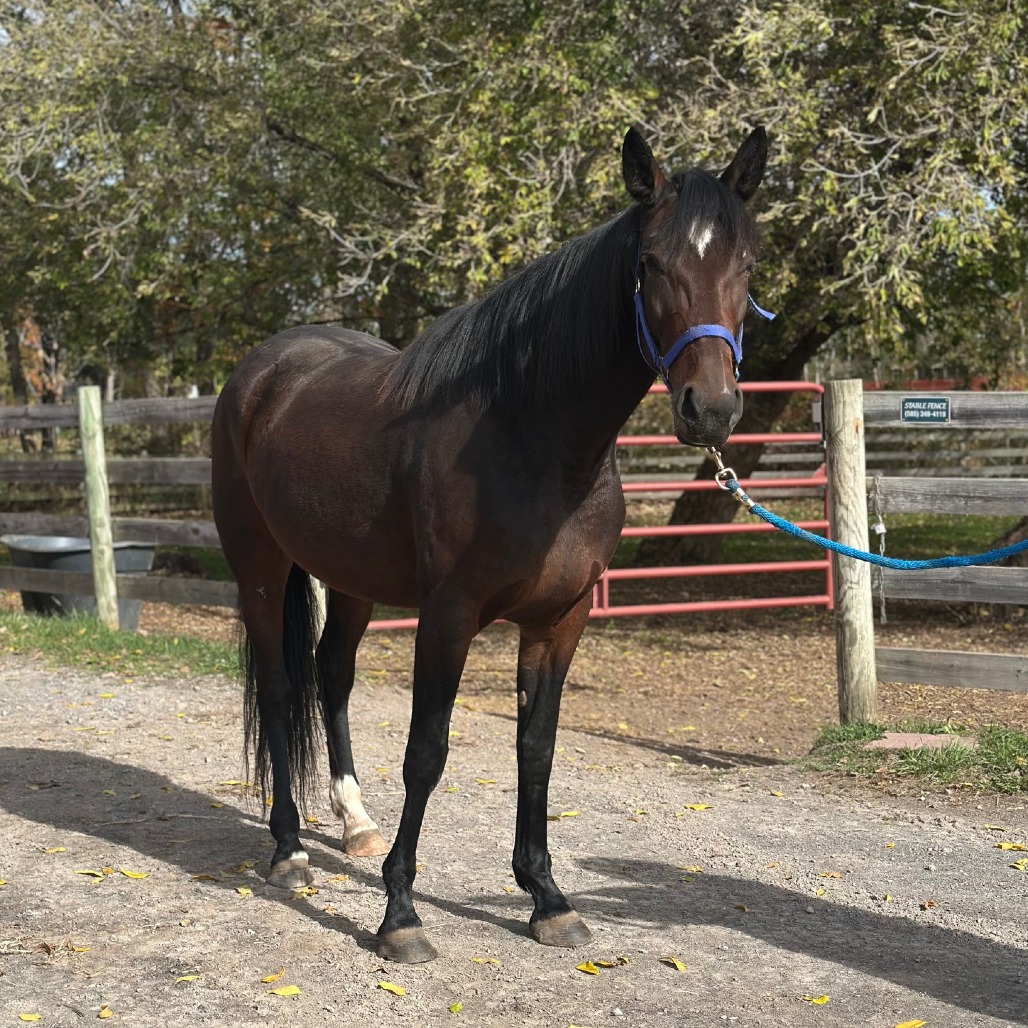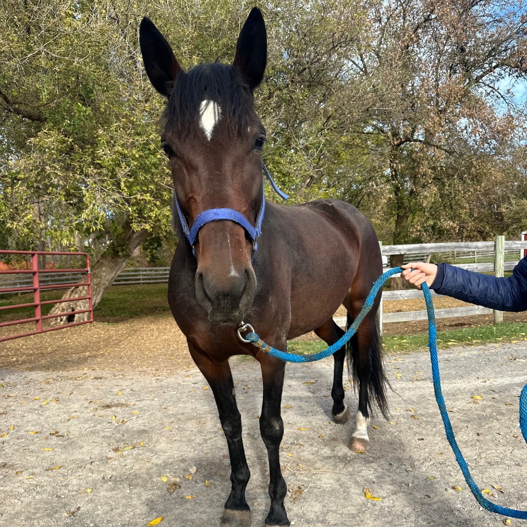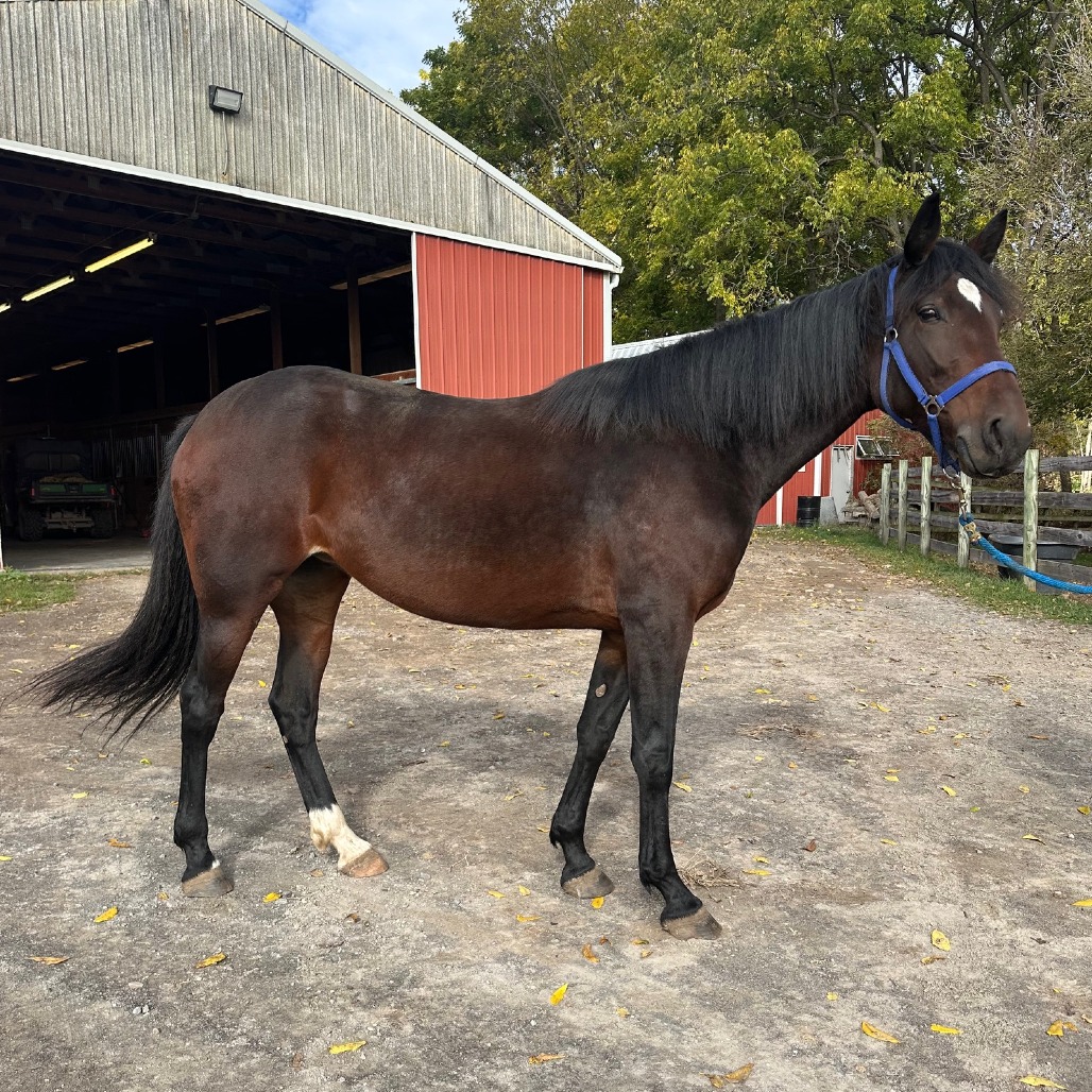 Nova - Go Get Con's Nova 2020 Standardbred 15.1hh Bay Mare Nova is a beautiful, young, friendly Standardbred. Before coming to us, Nova was at Therapeutic Horses of Saratoga. Nova was harness trained at one point years ago, but did not race. She was transferred to us because they believed she had the potential to be a great riding horse.. and we agree! Nova's currently being started under saddle. She lunges well and is working on a canter. We have seen her trot. If she can pace, we haven't seen it yet. She has worn a full English saddle and headstall, and so far has gotten to the point of someone laying on her while being led around. Nova's done amazing with every step of the process and has had lots of desensitization training. Nova has a great personality with both humans and horses - successfully turned out with both mares and geldings. She adjusts well to changes, and will make a great partner for someone very soon. Could you be that next home Nova is looking for? She'd love to meet you! Suitable for a trainer or advanced rider working with someone experienced in starting horses. Adoption Fee: $2000