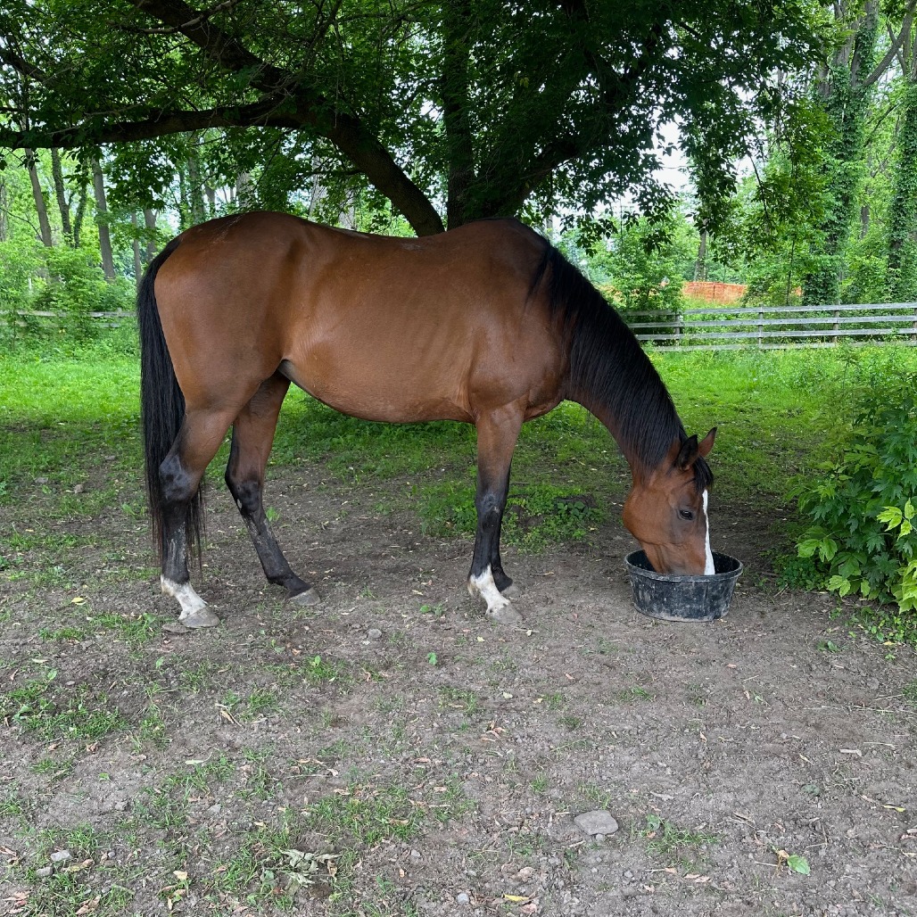 This sweet little lady is Lindsay - 15hh bay TB mare. She has all the personality traits you would want in a mare; sweet, intelligent, and attention loving. Lindsay has excellent manners, trailers well, ties, stands for vet and farrier, and gets along great with other horses. She came to us with no vision in her left eye, but it doesn't affect her in the day to day. We know she is a thoroughbred that did not race, but for a number of years prior to coming to Lollypop Farm, she had just been loved on as a pasture pal. Currently being ridden walk/trot in the arena, this mare is green and has a motor, so she will require an experienced rider. She struggles tracking left, which may be due to her vision but we can’t be sure. She doesn’t seem spooky and loves to go – we could see her doing well as a trail horse with a friend nearby or on her blind side. Even though she is rideable, we believe she would be perfectly happy continuing that pasture pal life. Lindsay would make a great companion to you or your equine friend. She has done well with both mares and geldings, and has a quieter comforting nature overall. Suitable for an advanced rider or intermediate rider working with a trainer. With no riding intended, suitable for a beginner and up. Adoption Fee: $1500