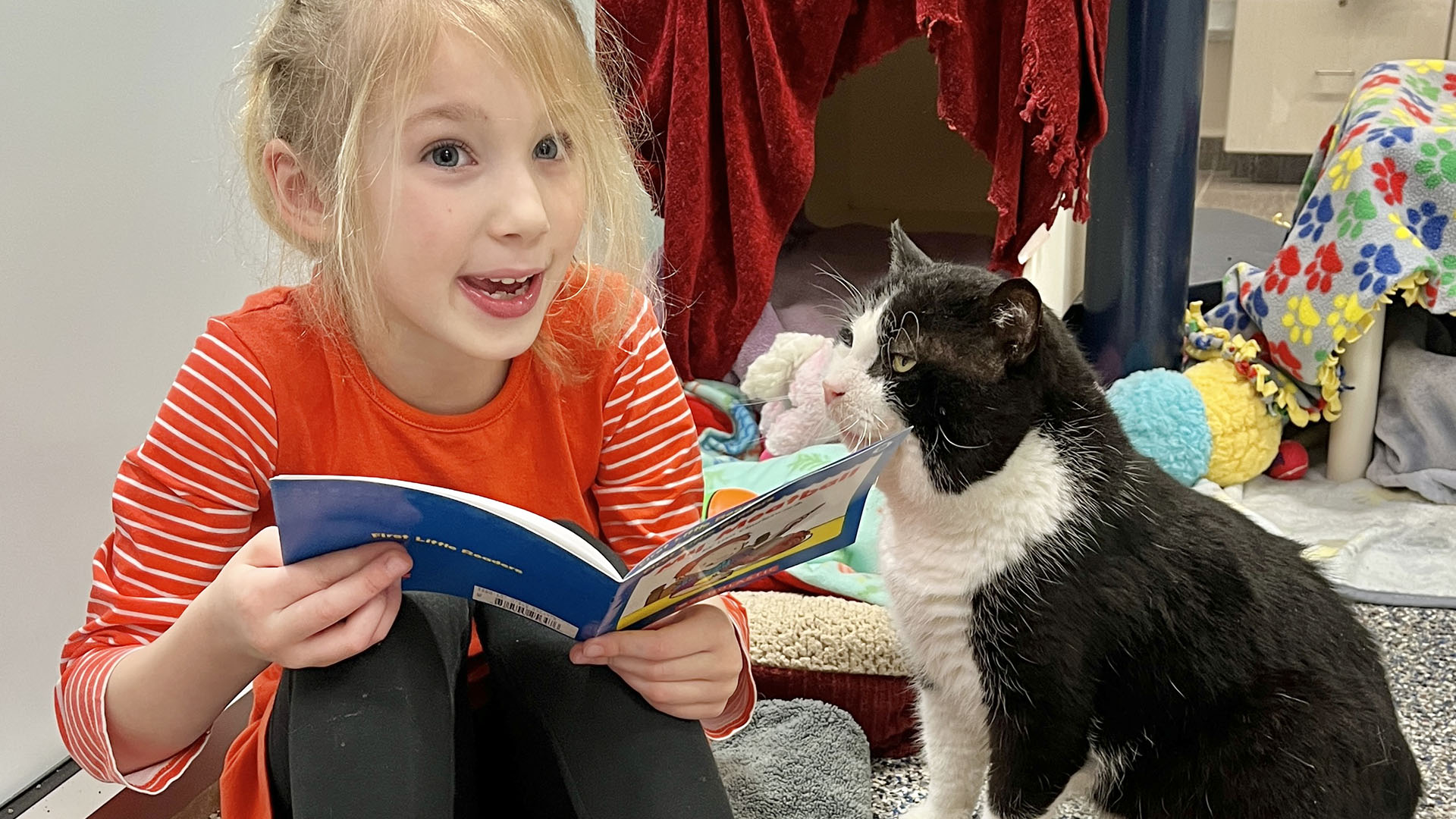 Our Book Buddies program allows children to read their favorite books to animals awaiting their new homes. We invite children to our main campus in Fairport to practice their reading skills in a positive, non-judgmental environment. Our pets are great listeners!